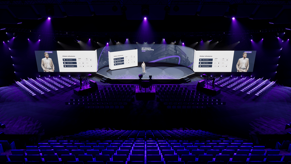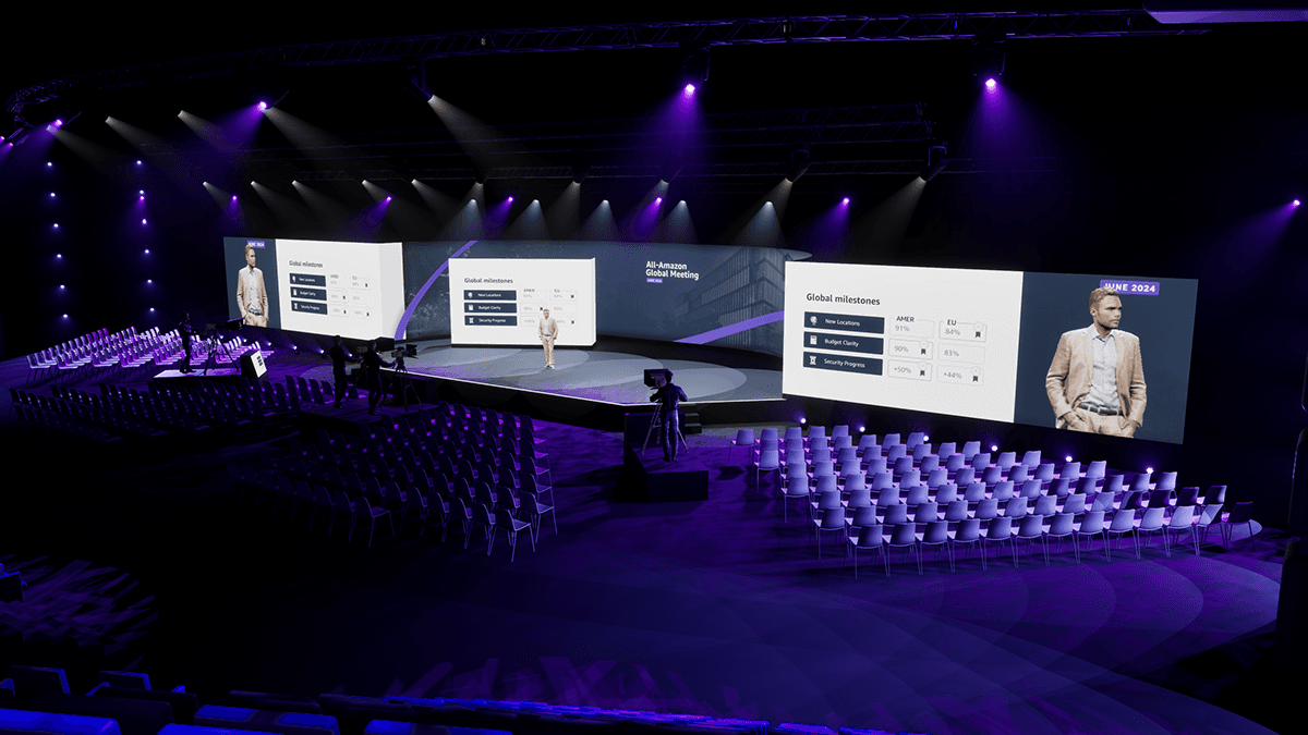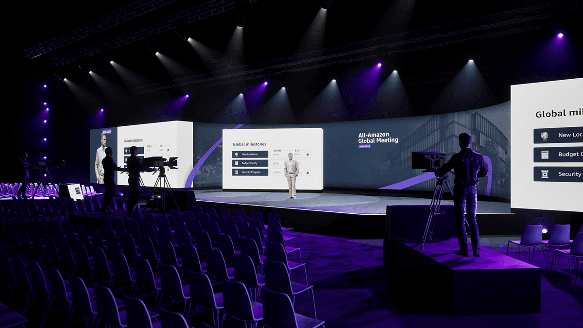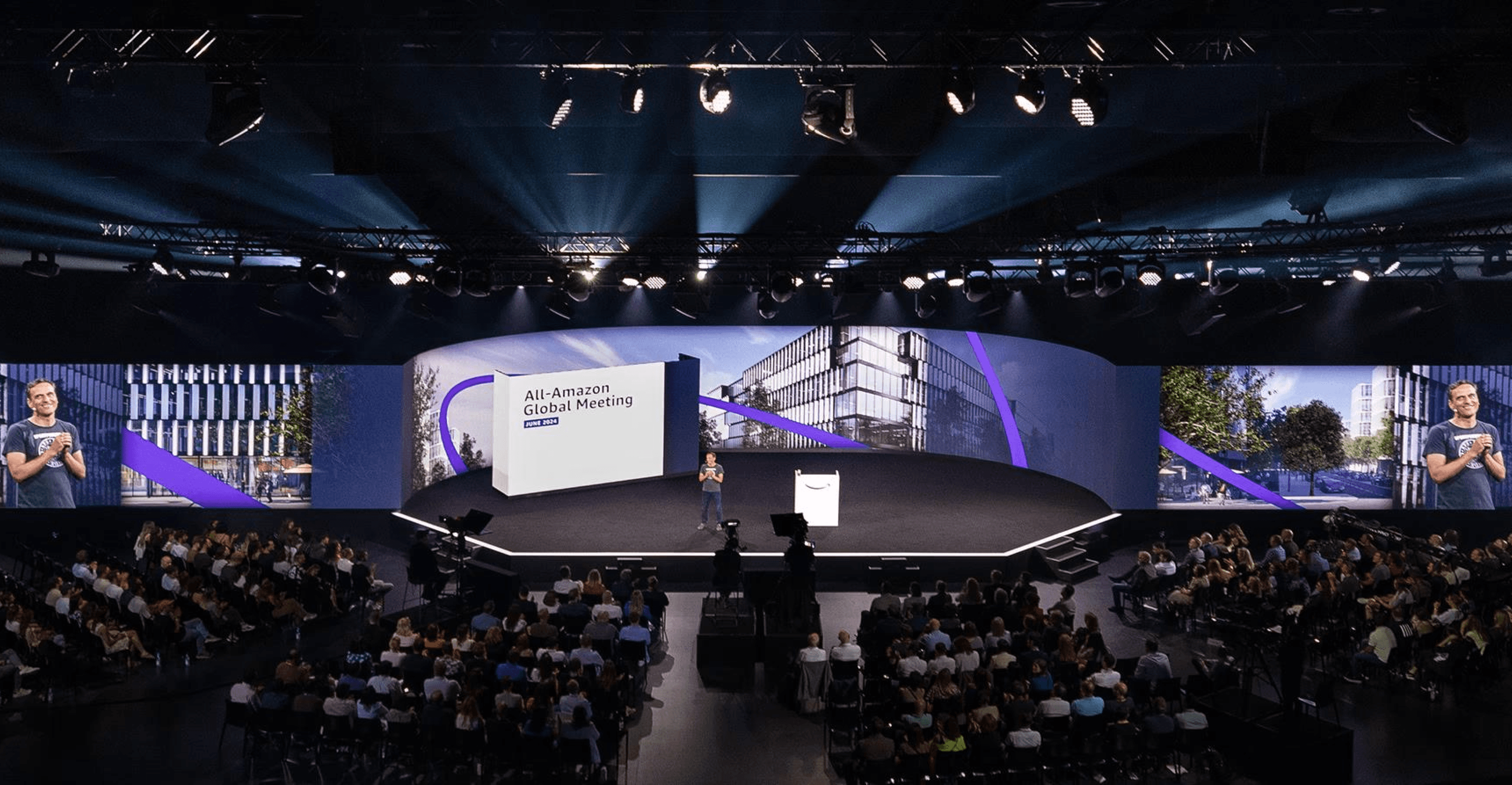 Stage design maintained polished production value and featured iconic Amazon Munich facilities.