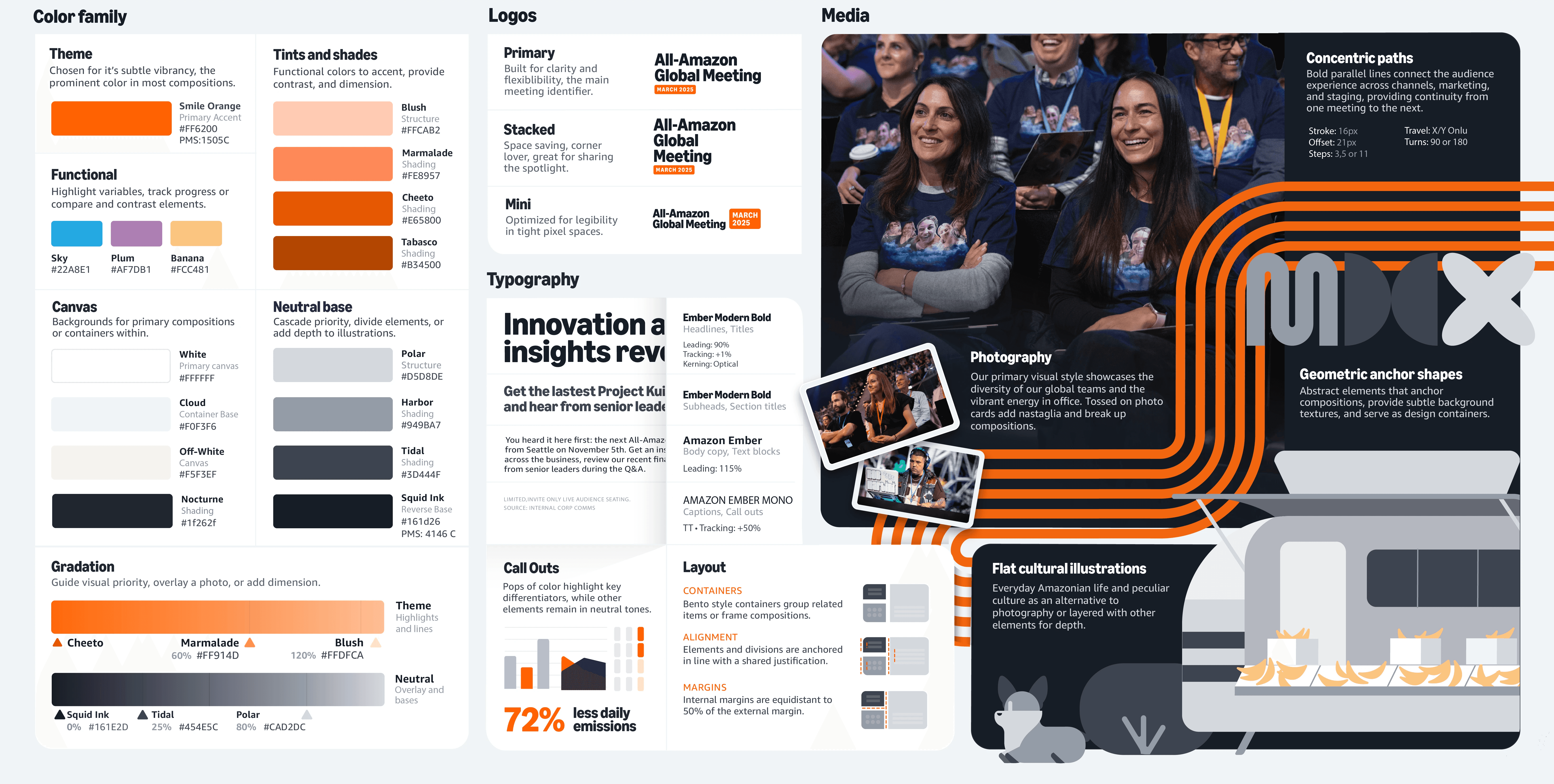 Key elements for color, typography, and layout at a quick glance.